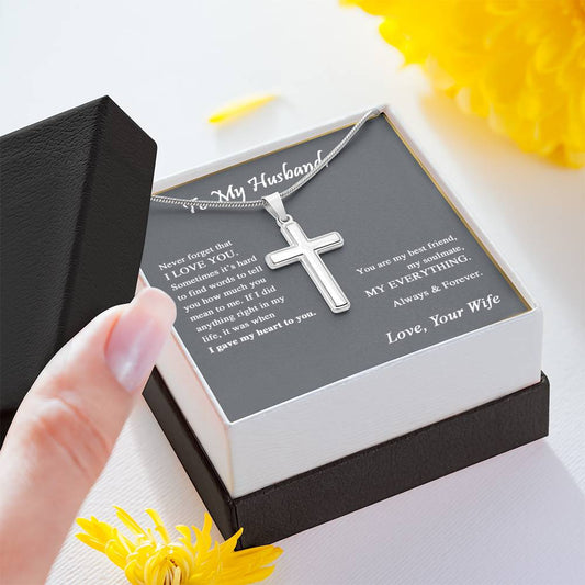 To My Husband | Never Forget That I Love You - Stainless Steel Cross Necklace